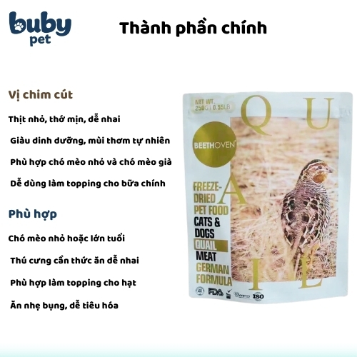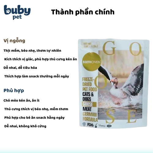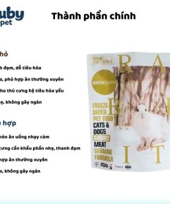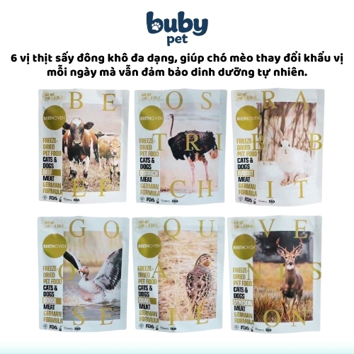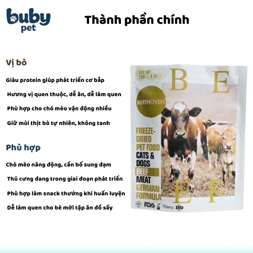 Thịt sấy khô cao cấp Beethoven là dòng snack dinh dưỡng dành cho chó, được làm từ 100% thịt tươi chọn lọc, sấy khô tự nhiên giữ trọn hương vị và dưỡng chất. Không pha bột, không phẩm màu, không chất bảo quản – an toàn và dễ tiêu hóa cho boss.
